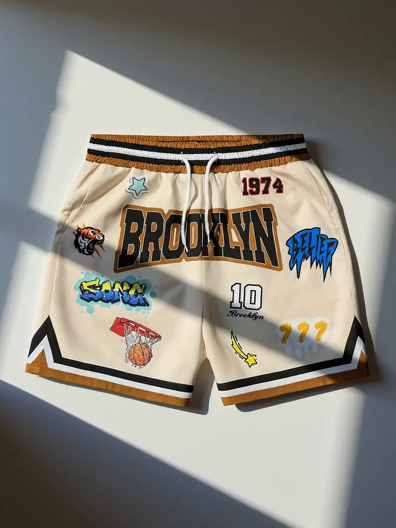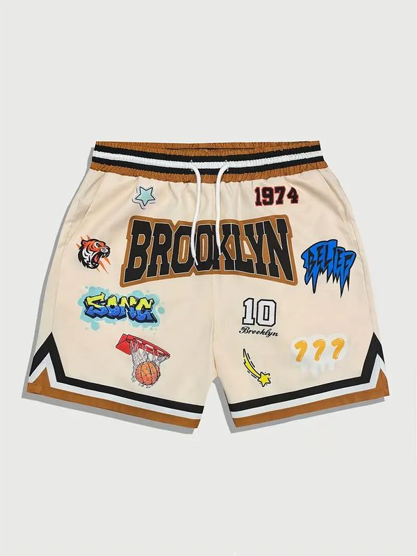 Striped Trim Letter Pattern Drawstring Wide-Leg
