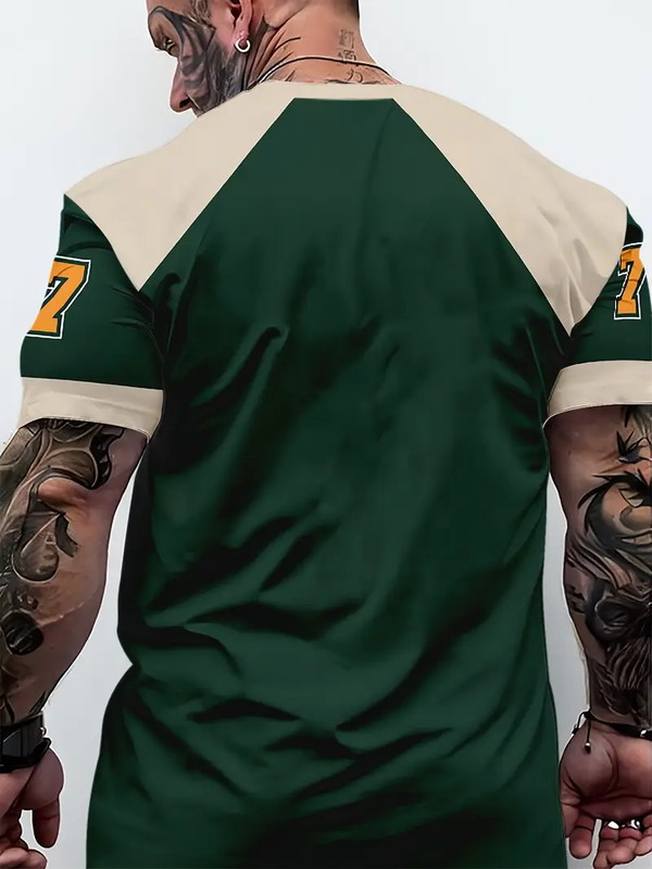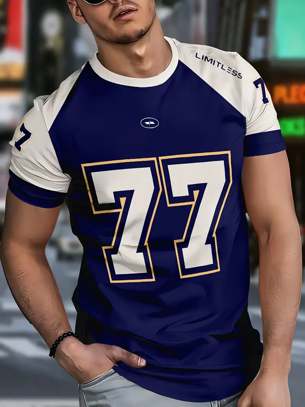 Men's 3D Digital Print Short Sleeve T-Shirt with Bold '77'
