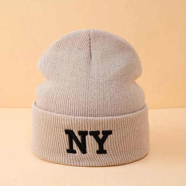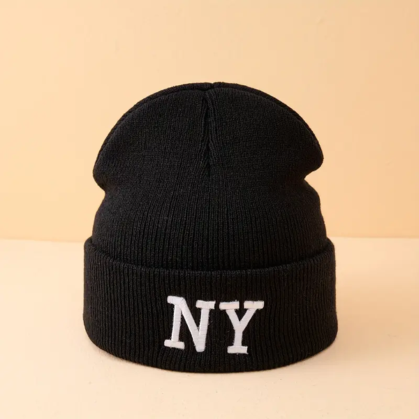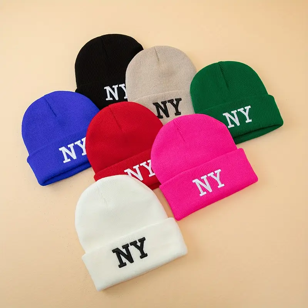 NY Embroidery Graphic Beanie Classic Candy Color Knit Hats