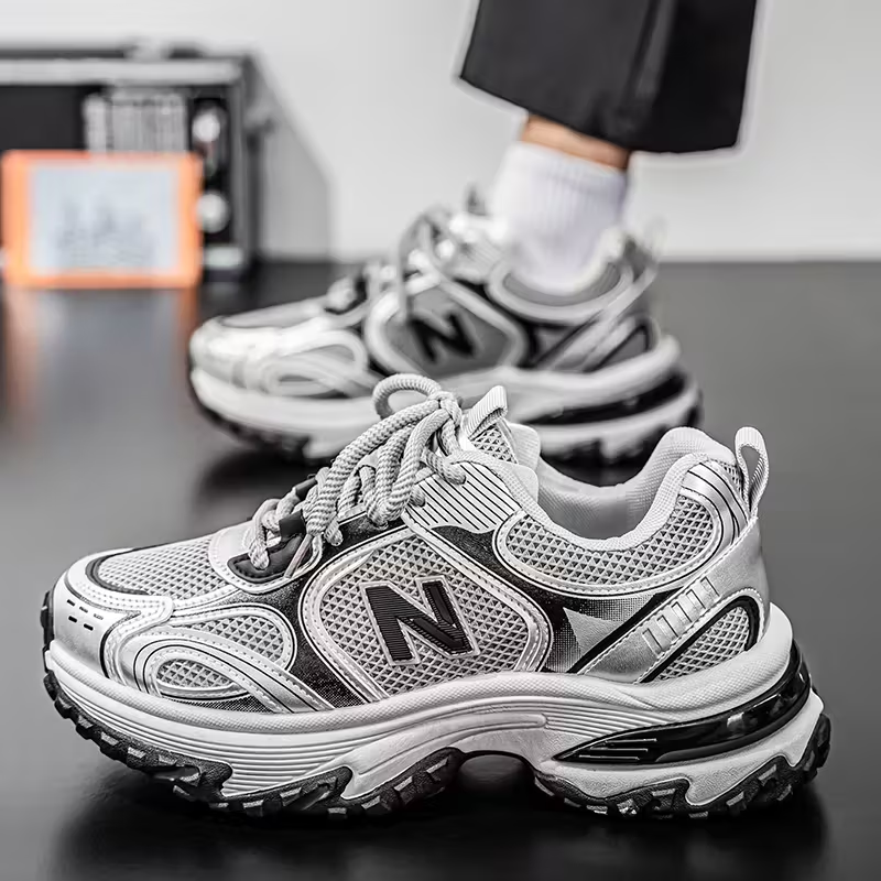Chunky Platform Lift Sneakers - Low-Top Lace-Up Retro