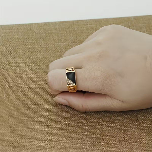 1pc Elegant Golden-Plated Ring with Black Rectangular Faux & Accents