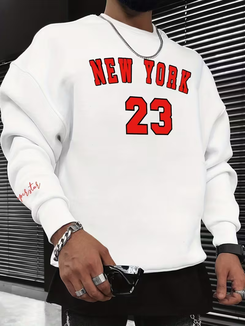 NEW YORK 23 Print Fashionable Men's Casual Long Sleeve