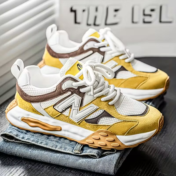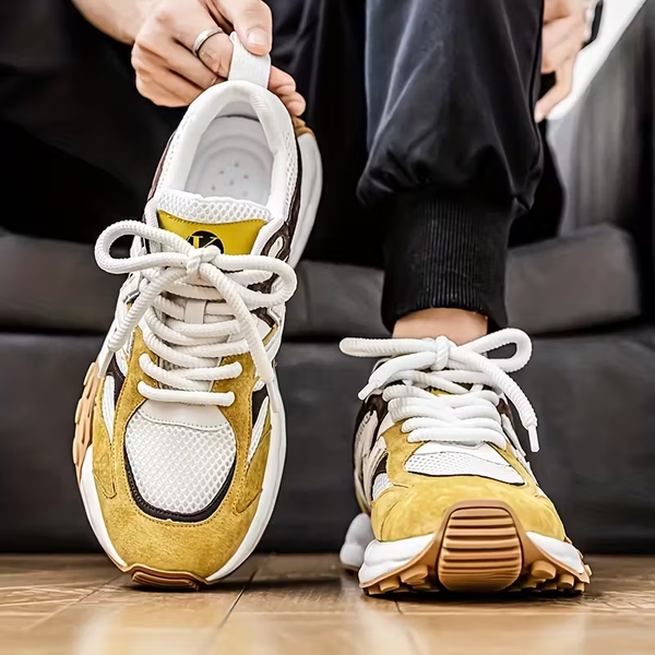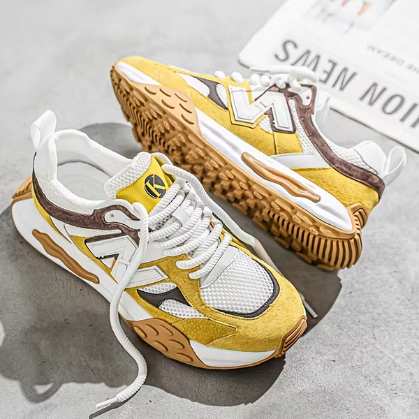 Men'S Retro Sneakers - Breathable Mesh & Synthetic Upper, Thick Cushioned PVC Sole